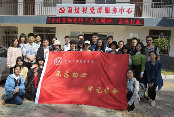 坚持立德树人,以党风促教风引领学风。结合历史学系的“田野调查实践周”,以教师党员为主力的实践教学导师分组带领学生奔赴南岭山区、景德镇、南雄始兴和澳门进行田野考察。教师党员带好头,注重引导督促学生实践和思考,从课程设置到后勤保障都事必躬亲、严谨细致。南雄始兴考察队结合中大扶贫工作的开展,考察模范扶贫村——马市镇红梨村,亲身体会精准扶贫政策对乡村经济和风貌的改变,并与地方文史专家座谈,了解始兴的历史沿革和革命先烈事迹,体会先贤们荜露蓝蒌、艰苦奋斗的精神。教师党员始终将“立德树人”内化到调查实践中的各个环节,坚持在实践中训练、提高学生的专业知识、文化素养和道德情怀,以实际行动引领学生成长。