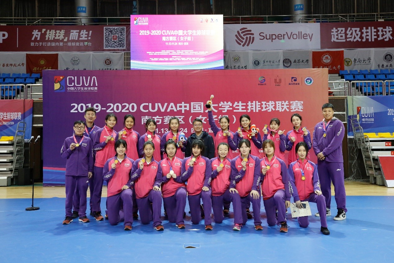 11月23日,2019-2020 CUVA中国大学生排球联赛南方赛区女子组在四川宜宾落幕。来自南方赛区的复旦大学、南京大学、浙江大学、东南大学等21支高校女子排球队在9天时间里展开了激烈角逐,最终决出12支队伍参加2020年的中国大学生排球联赛总决赛。我校高水平女子排球队(以下简称女排)获得南方赛区冠军,荣获了我校女排在该赛事上的第一枚金牌!