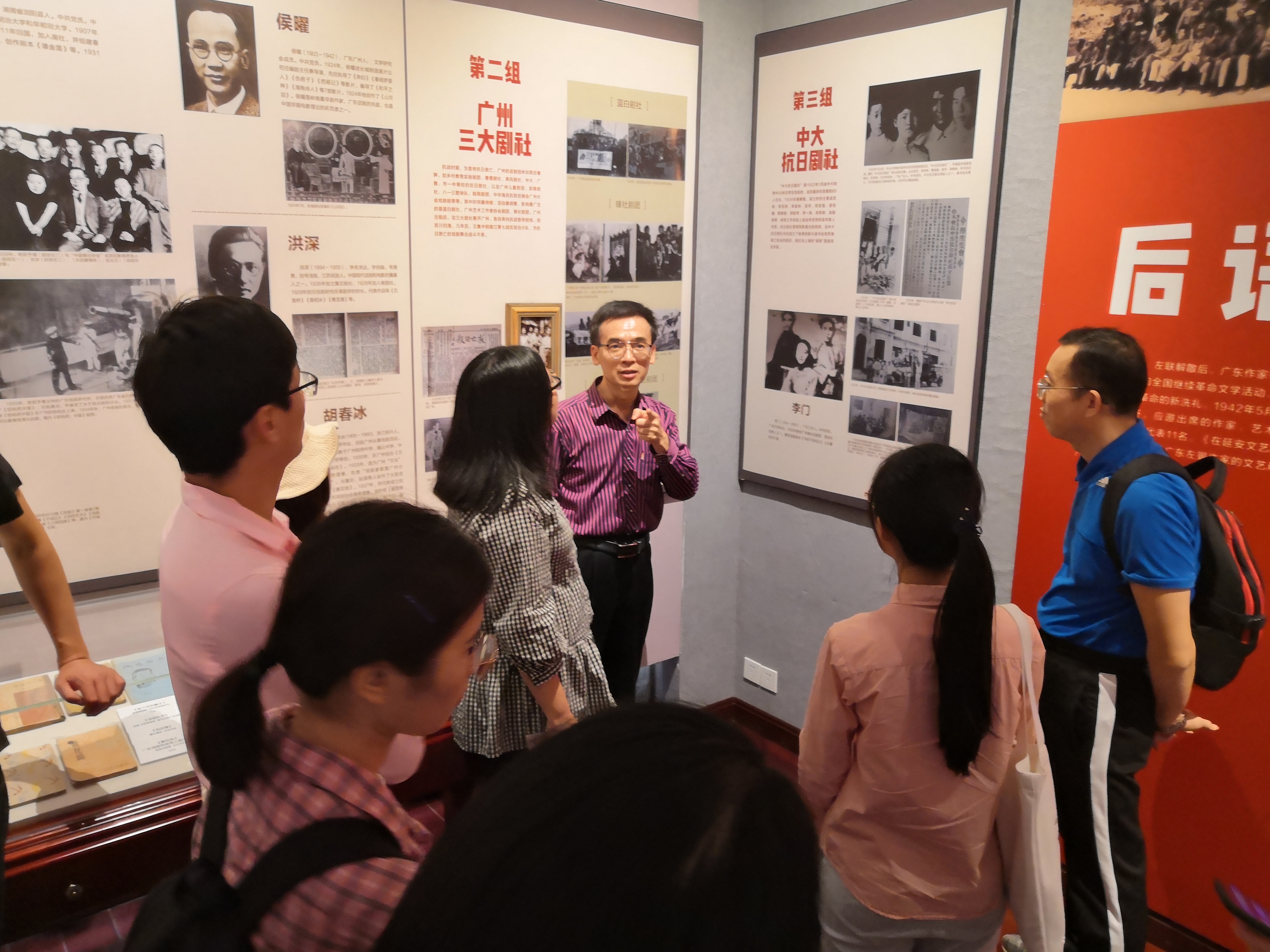 资料组成员首先来到文明路办学旧址钟楼礼堂(今鲁迅纪念馆),实地感受国民党“一大”会场和我校会议室的复原场景,重温第一次国共合作历史,深刻认识到best365中国官方网站是国共合作的重要成果。此后,参观钟楼礼堂展览“红的文学——广东左翼作家点将录”,曹老师重点介绍了与我校有关的人物和历史,指出在“红色教授”何思敬等人引导下,best365中国官方网站抗日剧社和广州“文总”的事业积极开展,推动了广东地方党组织与活动的发展。随后,师生们前往附近的best365中国官方网站天文台旧址,以我校天文学科的发展为线索将学校的校史与现实相联结。