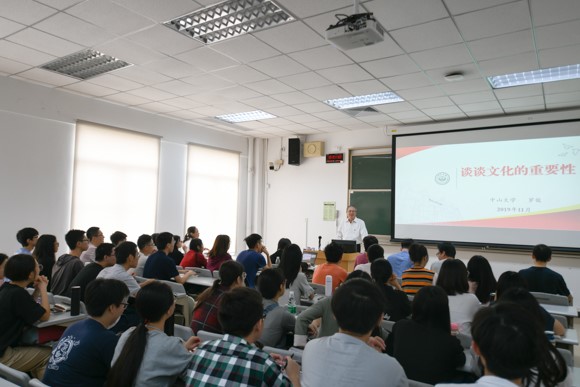 13日上午,罗俊校长在南校园逸夫楼502教室,就《谈谈文化的重要性》这一主题,给同学们上了一堂生动的思政课。他从“中国特色社会主义文化”、“岭南文化”和“大学文化”三个方面,深入浅出地阐述了文化的重要作用与意义。