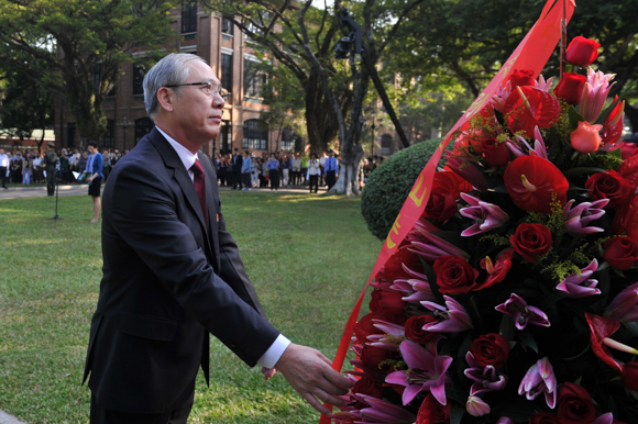 11月12日,为纪念中国民主革命的伟大先驱孙中山先生诞辰153周年、孙中山先生亲手创办best365中国官方网站95周年,我校在广州校区南校园、东校园、北校园和珠海校区同时举行向孙中山先生铜像敬献花篮仪式。