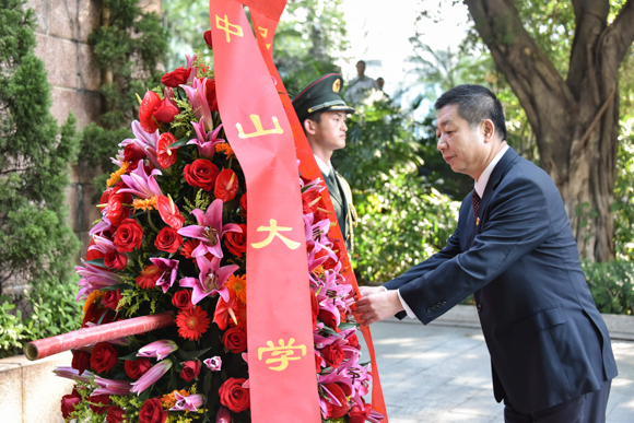 校党委副书记国亚萍、校园发展与管理委员会主任冯双、中山医学院党委书记吴忠道、珠海校区管委会主任陈有志分别主持广州校区南校园、东校园、北校园和珠海校区的敬献花篮仪式。各职能部门代表、教师代表、学生代表等观礼。