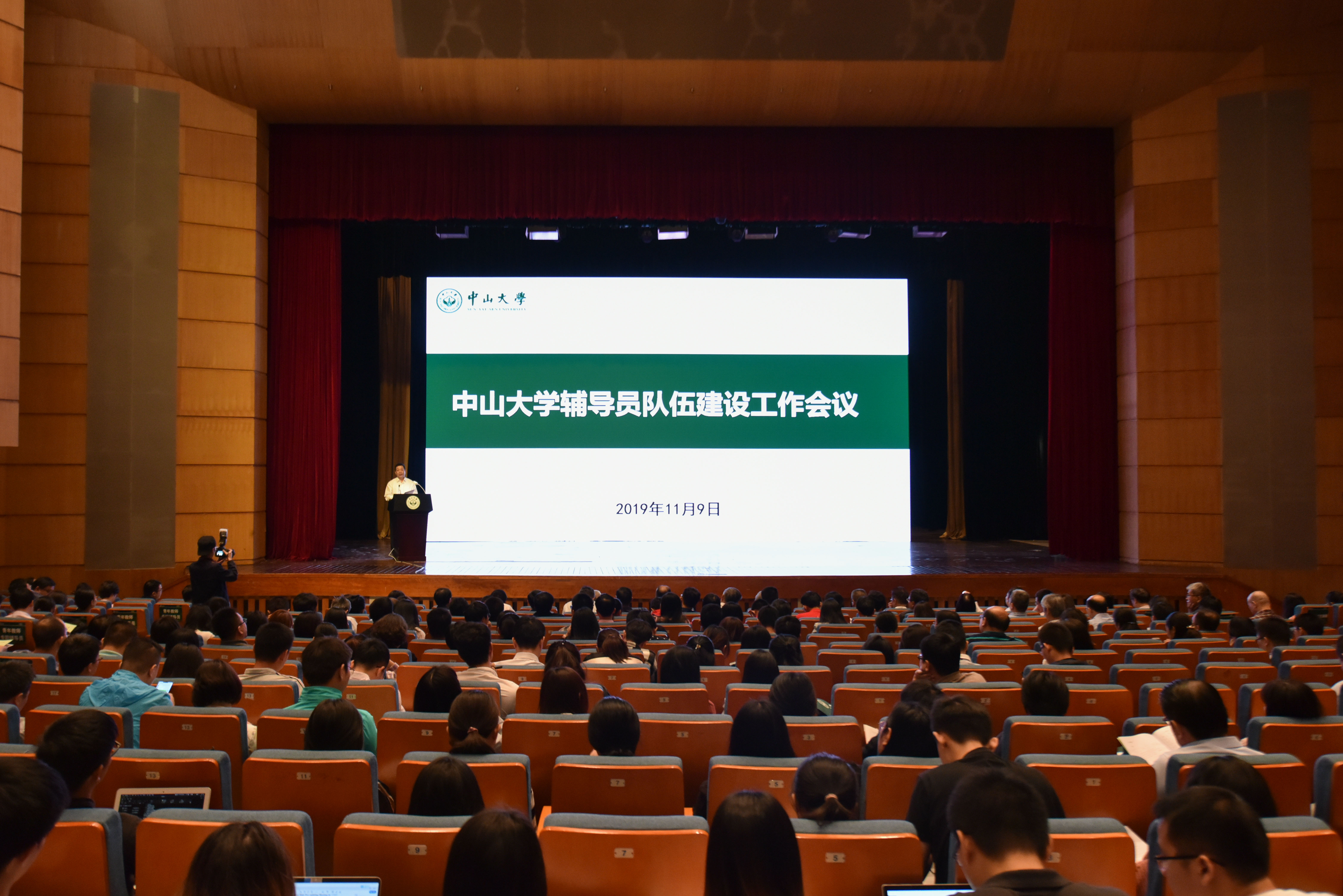 11月9日,我校辅导员队伍建设工作会议在梁銶琚堂召开。校党委书记陈春声出席会议并作主题报告,校党委副书记、校长罗俊出席会议,校党委副书记余敏斌主持会议。