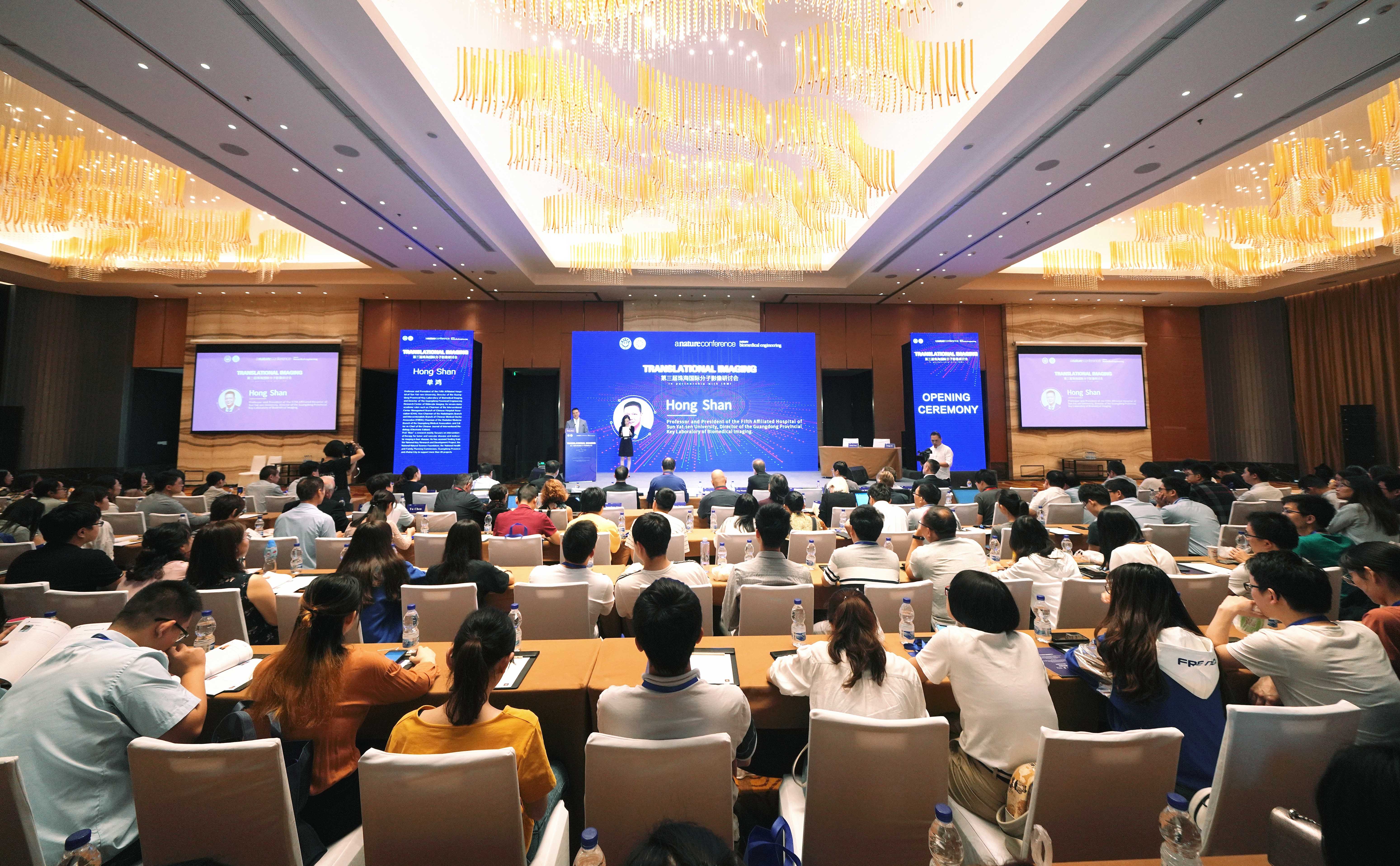 10月26-27日,附属第五医院、广东省生物医学影像重点实验室携手《自然-生物医学工程》杂志共同举办第三届珠海国际分子影像研讨会,聚焦国际诊疗影像技术领域的最前沿科研成果。中国工程院院士詹启敏,中国科学院院士唐本忠,英国医学科学院院士、欧洲癌症科学院院士Kevin Brindle,美国国家工程院院士汪立宏,海南大学校长、华中科技大学-武汉光电国家研究中心主任骆清铭,《自然-生物医学工程》编辑Pep Pàmies,附属第五医院院长单鸿,来自剑桥大学、威斯康星大学麦迪逊分校、西奈山伊坎医学院、哈佛医学院和慕尼黑工业大学等知名院校的权威学者和国内外分子影像领域专家学者以及从业人员等近千人参加了会议。