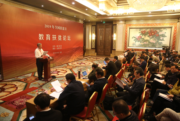 10月14日,在第六个国家扶贫日来临之际,按照国务院扶贫开发领导小组统一部署,由教育部主办的2019年教育扶贫论坛在京举行。论坛以“攻坚克难,打好教育脱贫攻坚战”为主题,重点围绕近年来教育系统脱贫攻坚的工作成效、成功经验、典型模式、理论创新等进行交流。教育部副部长孙尧、国务院扶贫办副主任夏更生、青海省副省长刘涛等出席论坛并讲话。