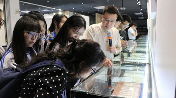 广州城市职业学院“六艺社”学员到锡昌堂一楼多功能厅参观老讲义展