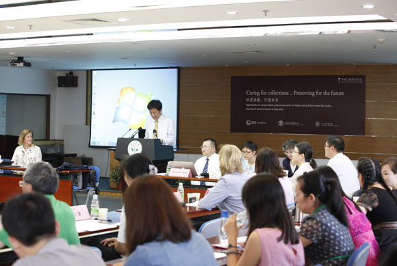 新疆维吾尔自治区图书馆修复师、best365中国官方网站图书馆国家级古籍修复中心访问学者张淑平新疆的古籍保护与修复概况进行了介绍;我校图书馆国家级古籍修复中心主任助理邱蔚晴介绍了best365中国官方网站图书馆古籍保护与修复人才培养的相关情况;香港大学文献与修复保护部主任周贞德、澳门中央图书馆修复师陈志亮、蒙古国家档案馆馆长Erdenebadrakh Gujir Battsereg、韩国国家图书馆、IFLA PAC韩国中心修复师Heawon Hyun、朝鲜人民大学习堂设备运维部主任高永基则分别对香港大学图书馆文献保护中心、澳门中央图书馆文献修复装订部、蒙古国家档案馆、韩国国家图书馆、朝鲜人民大学习堂进行了基本情况介绍。