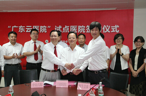 “广东省云医院”项目,立足于搭建一个开放的互联网平台,整合行业内外资源, 旨在实现及时、方便就医和优质医疗资源的下沉,通过整合线上线下资源,优化医疗服务的就诊流程,为群众提供便捷、安全、温馨的优质医疗服务;为医院的医疗资源提供基于互联网的跨院区、开放型优化配置和有序流动及资源共享互用。经三方友好协商,我校附属第六医院同意作为试点医院,共同推进“广东省云医院”项目建设;同时,基于此项目,三方建立长期战略合作关系,共同致力于打造国内最佳互联网医疗实践。
