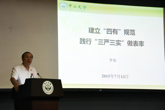 罗俊校长以《建立“四有”规范 践行“三严三实”做表率》为题讲专题党课