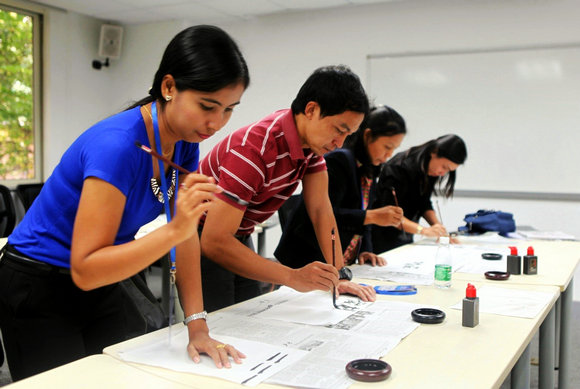 活动期间,教育代表团成员聆听了中国概况、中国教育体系等讲座,系统地学习了解中国的社会文化及体系。成员还听取了汉语口语交际课,课程采用翻译法、问答法、类推法等多种教学方法,成员们学得津津有味,在愉悦的氛围中学习掌握实用的汉语口语。成员们还在书法、剪纸、太极等课程中,体验博大精深的中华才艺;通过喝早茶、参观陈家祠等活动,领略独树一帜的岭南文化。此外,成员还参观了我校南校区校园、国际汉语教材研发与培训基地,对我校校园环境与教学设施,以及基地汉语教材的收藏整理工作给予了高度评价。