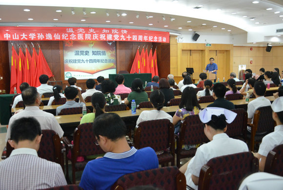 今年是建党94周年,抗日战争胜利70周年,也是孙逸仙纪念医院成立180周年,为了让广大党员职工对党史、抗战史、院史更加了解,7月1日下午,孙逸仙纪念医院举行了“温党史 知院情”——庆祝建党九十四周年纪念活动。医院党政领导班子、党委委员、党支部书记及支委、医务、机关及后勤支部党员、新党员等约计150人参加。活动邀请了原中山医学院副院长、孙逸仙纪念医院副院长、党总支书记姚崇仁老师,原该院护士刘玉茗老师,以及原该院党委书记黄洪铮教授讲述抗战救治伤患及老一辈医学家的故事。会议由王景峰书记主持。