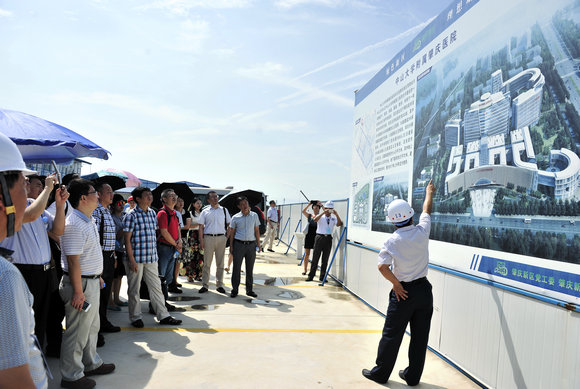 活动人员听取建设项目工程师介绍肇庆医院建设进展情况