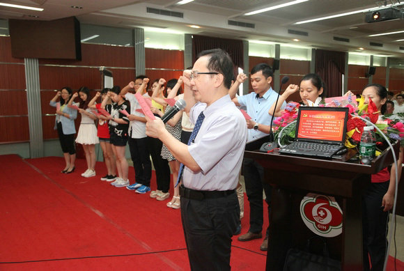 6月24日下午,中山六院党委组织医院领导、中层干部、党员、团员近200人举行庆祝中国共产党成立94周年系列活动。在庄严的党旗下,医院党委副书记汪中扬领誓,15名新党员代表及120名党员代表向党旗宣誓、重温入党誓词。