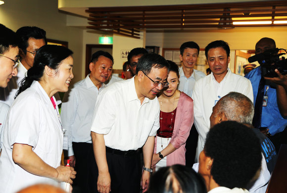 在斐济访问的广东省委书记胡春华看望术后病人