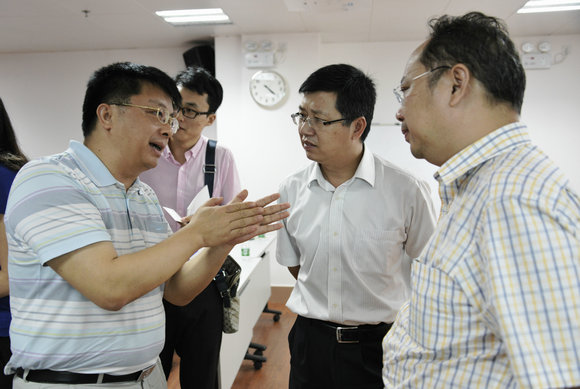 校长助理、移动信息工程学院院长李文军与到场嘉宾、企业代表交流