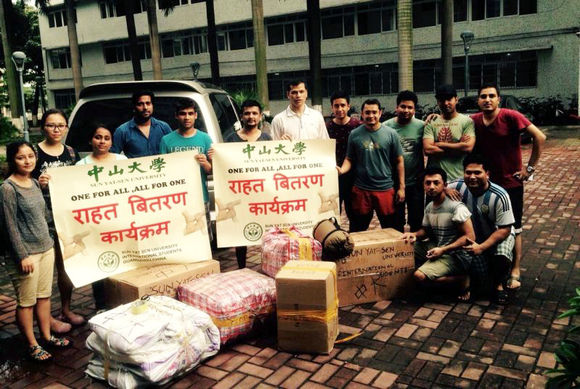 尼泊尔地震的消息一经报道,即紧紧牵动了许多在外游学尼泊尔学子的心。地震发生后的当晚,best365中国官方网站数十位来自尼泊尔的医学研究生立刻聚集,开会讨论身处异国如何为祖国献上一份力。Robin Bhattarai说:“尼泊尔常会发生5-6级地震,但看到新闻报道说这次地震为8.1级,我们就意识到这是一场大灾难。”尽快确保亲人朋友的安全,如何在最快时间营救灾区人民,如何为失去家园的人民提供物资及帮助,成为这些尼泊尔留学生最关注的事情。“我们一开始先是在北校区学生中进行募捐,然后联系2名目前在尼泊尔工作的中大校友,将善款汇给他们,让他们用这笔资金为灾区人民购买应急物资。”一名尼泊尔学生如是说。