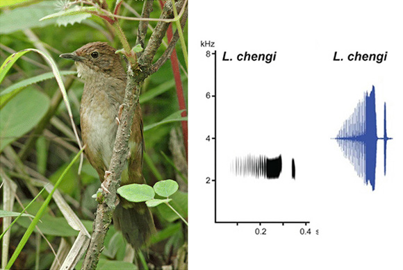 四川短翅莺(左)和它鸣唱的声谱图(右)