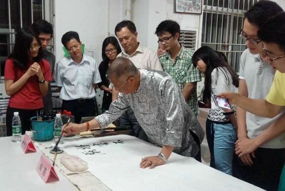 为弘扬中华传统文化,践行社会主义核心价值观,丰富大学生宿舍园区文化生活,珠海校区举办了“书香家园”系列文化活动,将一批书画、摄影、诗词等方面的名师名家请进宿舍文化室,与大学生开展近距离的文化交流。4月28日晚,珠海校区学工办邀请中国书法家协会理事、澳门书法家协会会长连家生先生,汕头书画名家子林先生在榕园7号文化室举行书法名家交流会。珠海校区管委会主任陶亮、党工委书记郝登峰和数10名书法爱好者参加了交流会。