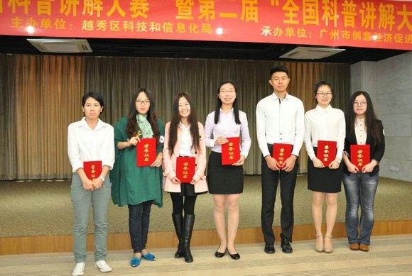 4月17日,“2015年广州科普讲解大赛暨2015年全国科普讲解大赛选拔赛”决赛在广东科学中心学术交流厅举行。我校中山医学院医学标本馆的学生讲解员获佳绩,其中,一等奖2名、三等奖1名、优秀奖3名、“越秀区优秀科普使者”称号获得者1名。