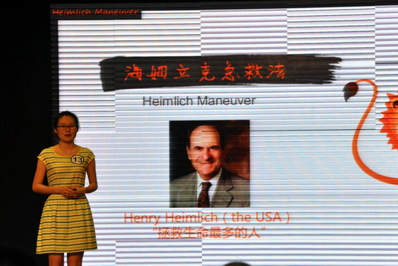 在决赛中,王瑗琪同学讲解“生命的拥抱”