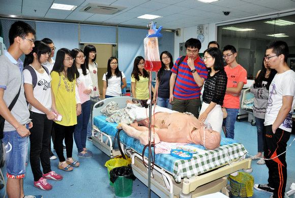在医学实验教学中心老师的带领下,同学们先后参观了北校区基础医学实验教学中心的分子、机能、形态、病原、解剖学实验室、医学标本馆、临床技能中心、共享型科研仪器管理中心等教学科研场所。为保证学生的参观质量,本次活动分为三组进行,每组都有党员教师领队;每一个参观点也有相应的教师解说。