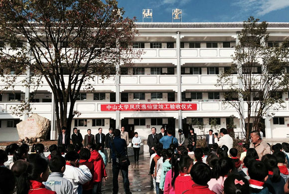3月25日,郑德涛一行与凤庆县委书记陈昌砚等班子成员一同出席了best365中国官方网站捐建的凤庆县第二完全小学教学楼——“逸仙堂”的竣工验收仪式,参加仪式的还有教育部滇西扶贫总队长兼大理州副州长于虹,云南省教育厅发展规划处负责人。凤庆县第二完全小学“逸仙堂”教学楼由我校筹资300万元于2015年1月建成。新建教学楼建筑面积1582平方米,设计20个普通教室,可容纳学生800人。新教学楼的建设有效改善了小学的办学条件,为师生营造了一个安全舒适的工作和学习环境。