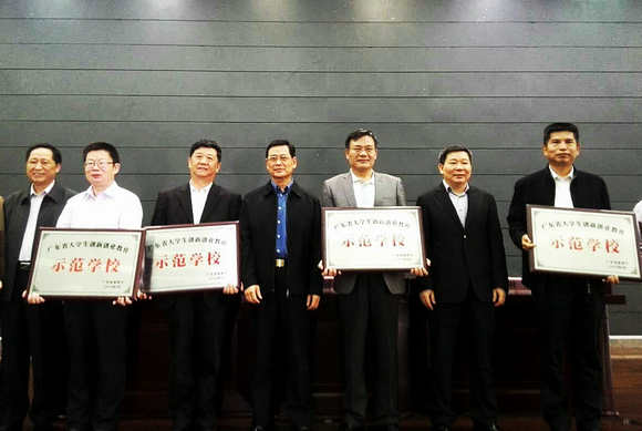 近日,广东省教育厅公布了第一批广东省大学生创新创业教育示范学校名单,我校获评广东省首批大学生创新创业教育示范学校。3月31日,在广东省2015年高校毕业生就业创业工作会议上,广东省副省长陈云贤、广东省教育厅厅长罗伟其、广东省人民政府副秘书长林积为首批示范学校授牌。
