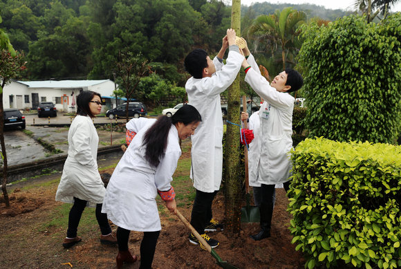 正值全国第37个植树节之际,3月12日上午,我校附属第五医院第七届认捐植树活动在蒙蒙春雨中举行。附属第五医院院长伍卫、党委书记林伟庭等医院领导和职工一起冒雨栽植树苗。