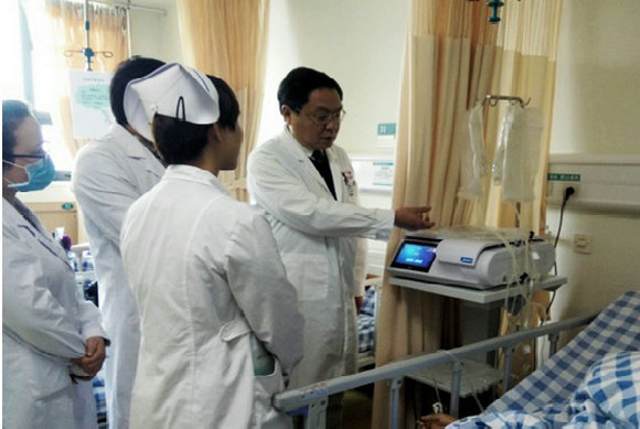 如何有效进行自动腹膜透析患者的监护及管理,是摆在及广大腹透患者及肾内科同仁面前的一道难题。由国家科技部十二五科技支撑计划支持,附属第六医院与福建东泽医疗有限公司共同研制的PD-GO可远程监控的自动腹膜透析机,通过2G、3G和4G网络实现远程监控功能,颠覆和创新性地帮助医护人员实时了解居家透析尿毒症患者的治疗情况并予以及时有效地主动干预与指导,这将有效帮助改善腹膜透析质量和预后。姜宗培教授指出:“我们寄希望于更密切的监护患者,使得自动腹膜透析残肾功能下降快于普通腹膜透析的缺点得以克服。”