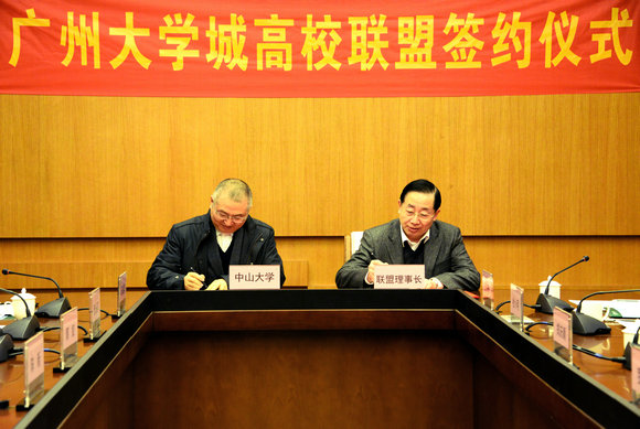 联盟理事长郑德涛与我校副校长李善民签署《广州大学城高校联盟加盟协议书》