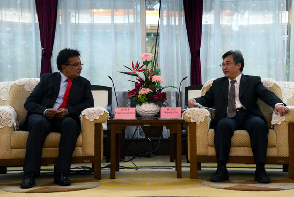 12月3日至4日,秘鲁皮乌拉大学(University of Piura)校长赛尔赫•巴拉雷索(Sergio Balarenzo)率团一行6人来访我校。随团来访的还有秘鲁前驻华大使Jesus Wu Luy、秘鲁驻广州总领事David Gamarra等。12月3日上午,我校副校长朱熹平会见了来宾。