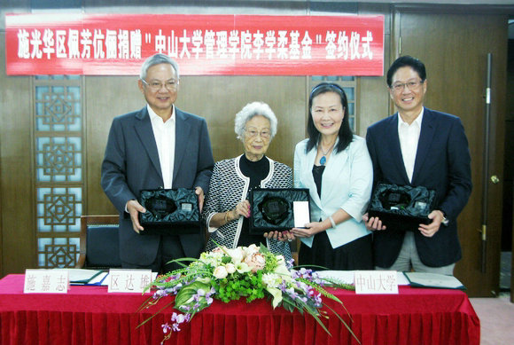 10月29日上午,施光华、区佩芳伉俪捐赠best365中国官方网站管理学院李学柔基金签约仪式在南校区中山楼顺利举行。此次捐赠由社会贤达人士区达雄先生和施嘉志先生以父母施光华、区佩芳伉俪的名义,各向我校管理学院李学柔基金捐赠了50万元人民币,捐赠总额共计100万元人民币。区佩芳女士及我校党委副书记李萍一行出席了签约仪式。