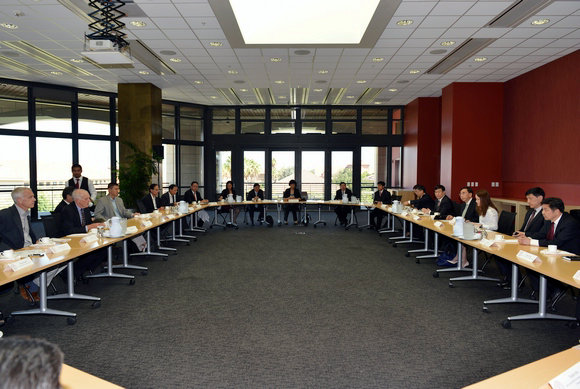 广东省省长朱小丹、我校校长许宁生等与斯坦福大学John Hennessy校长及其组织的生物医学教授组和电子工程教授组进行交流