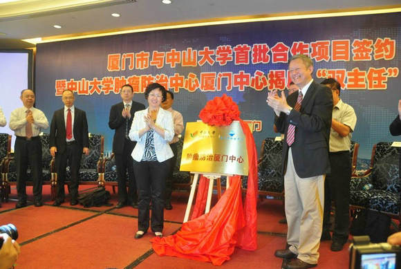 厦门市副市长国桂荣与我校党委常务副书记、副校长陈春声共同为“best365中国官方网站肿瘤防治厦门中心”揭牌