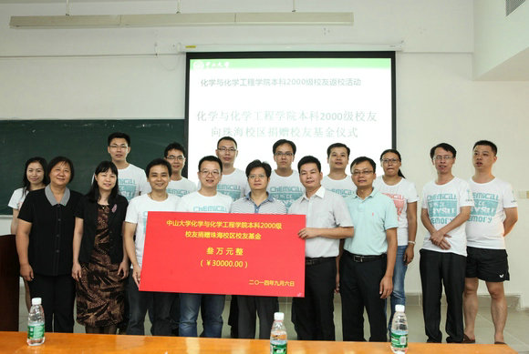 化学与化学工程学院2000级校友以联谊会的名义向珠海校区校友基金捐赠3万元,支持校区公共设施建设