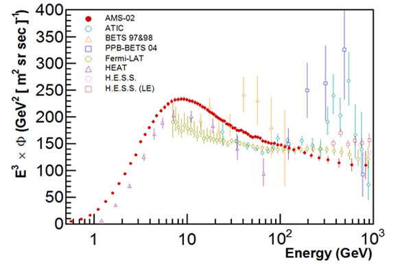 阿尔发磁谱仪实验(以下简称AMS)的新结果于9月18日发表在Physical Review Letters上,此项结果是基于AMS在国际空间站(ISS)上量测并分析的前四百一十亿件事例而取得,它使我们对高能宇宙射线的本质有更深入的了解,并使暗物质存在的争议趋于明朗。