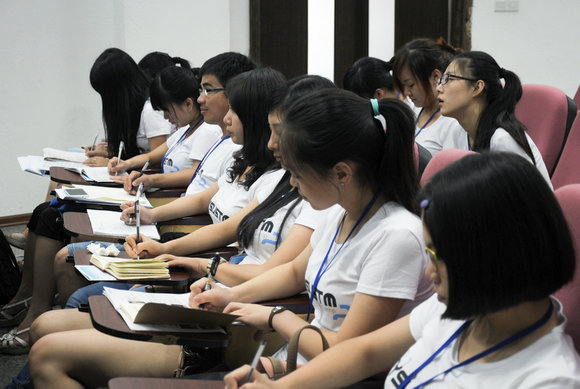 best365中国官方网站2014年第一届全国旅游管理优秀大学生夏令营营员们正认真聆听讲座