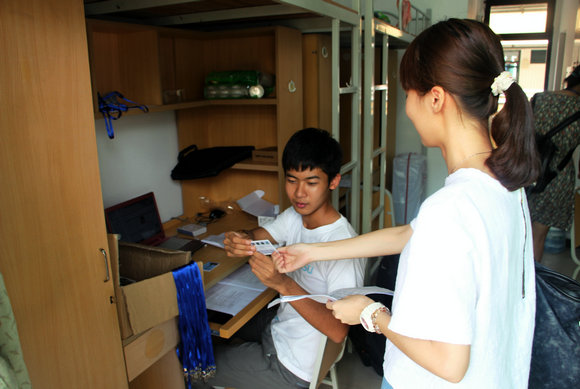 本着从新生需求出发、简化报到流程、优化报到环节的原则,今年不少院系在新生报到前就了解了他们的行程安排并提前告之要入住的宿舍。珠海校区的新生注册地点统一由教学楼下改为宿舍楼下,各院系在对应的新生宿舍楼下设立注册点,试行“先入住后注册”的一站式报到注册模式,其中荔园7座就集中办理户口迁移、缴费咨询与校园卡照片采集等注册程序。而东校区所有院系则直接将新生资料袋放到宿舍,或由学长直接送到新生手中。其中8个院系甚至在新生到校前就帮忙领取好了房间钥匙和空调卡,避免了新生排队领取资料的麻烦。新生一踏入学校便可直接入住宿舍安顿,之后再在院系迎新志愿者的帮助下完成报到手续,更大程度地体现了学校的高效管理及人文关怀。
