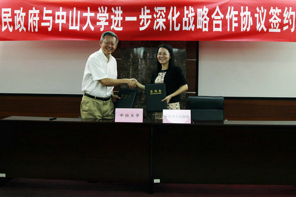 我校常务副书记、副校长陈春声与珠海市政府副市长龙广艳代表双方签署合作协议