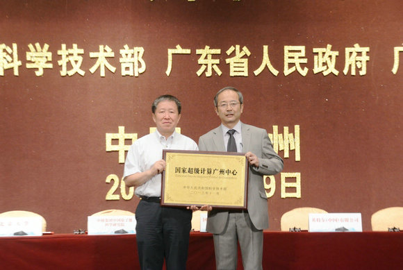曹健林副部长向广州超算中心授予“国家超级计算广州中心”牌匾