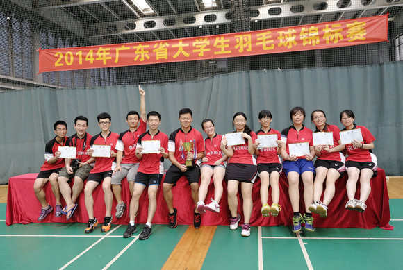 5月29日至6月1日,我校羽毛球队在李寅教练的带领下,参加广东省大学生羽毛球锦标赛,以绝对优势夺得甲组团体总分第一名。其中,女双包揽冠亚军,男单斩获冠军和第六名,男双收获季军,女单取得第八名。该项比赛共有来自全省52所高校的587名运动员参加。