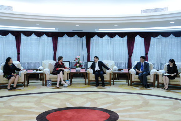 5月27日下午,英国阿斯顿大学(Aston University)校长Julia King爵士、国际发展部主管Wendy Yip女士一行到我校访问。我校校长许宁生会见了代表团一行,国际合作与交流处处长凌文华陪同出席会见。