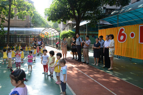 郑德涛书记一行观看北校区幼儿园的小朋友做课间操