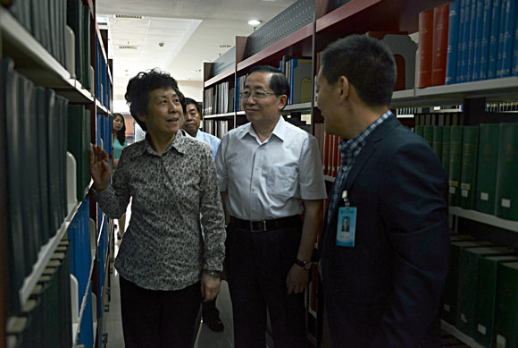 严隽琪主席参观东校区图书馆的“喜乐斯藏书”