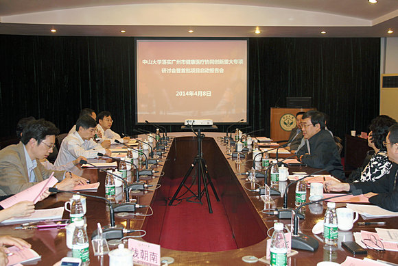 4月8日下午,我校落实广州市健康医疗协同创新重大专项研讨会暨首批项目启动报告会在北校区举行。广州市健康医疗协同创新重大专项技术总师钟南山院士、专家组陈凌研究员,广州市科信局副局长王越西、副处长沈于阗,我校校长许宁生、副校长黎孟枫,医科处处长梁丹、副处长范瑞泉以及相关课题组负责人共40余人参加了会议。会议由黎孟枫副校长主持。