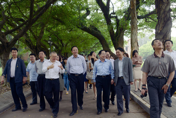 郑德涛书记、李善民副校长陪同调研组一行参观中大校园