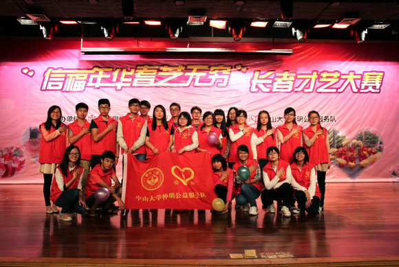 3月28日,由我校仲明公益服务队、广州义工联及中信银行广州分行联合主办的“信福年华,耆艺无穷”长者才艺大赛在南校区举行。广州市老龄委、广州市民政局、中信银行广州分行、广州市义务工作联合会、广州逢源街等20个家庭综合服务中心以及我校仲明公益服务队成员参加了本次活动。