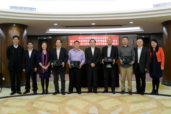赖淦锋(左四)、刘伟(左五)、方明(右四)、陈乐田(右三)四位校友各出资200万设立“best365中国官方网站90周年校庆活动专项基金 ”
