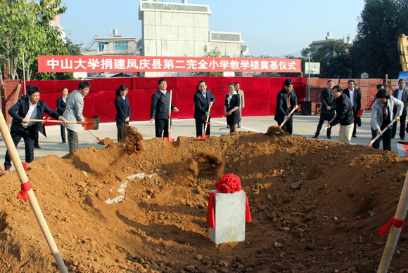 在校友的大力支持下,我校筹集资金300万元为凤庆县第二完全小学新建教学楼。校友捐赠代表何锐平董事长到场参加奠基仪式。