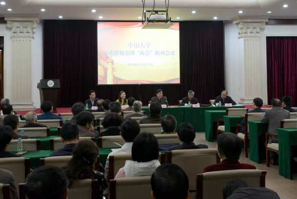 3月21日上午,我校在南校区怀士堂召开传达贯彻全国“两会”精神会议。全国人大代表、校长许宁生,全国政协常委、广东省政协副主席王珣章,全国政协委员毛蕴诗、刘昕分别传达全国“两会”精神。会议由校党委副书记李萍主持。